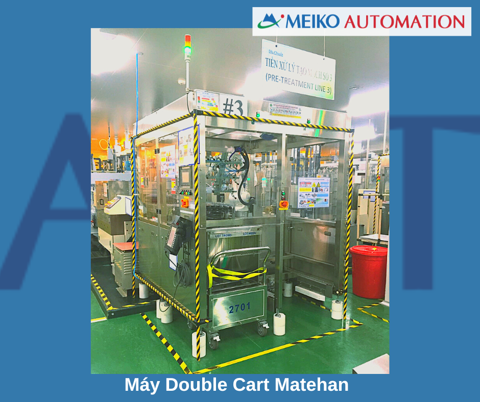 Máy Double Cart Matehan dùng để cấp bo mạch cho hầu hết các dây chuyền sản xuất tự động có sử dụng xe Vrack như dây chuyền tạo mạch, mạ đồng, mạ điện,… Hiện máy đang được sử dụng trong dây chuyền mạ điện, tạo mạch của nhà máy Điện tử Meiko Việt Nam (Meiko…