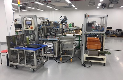 TÍNH NĂNG: Đưa nhận bản mạch tự động cho máy dập Sử dụng Robot 6 trục UR5 (Universal Robot) Điều khiển bởi mạch khí và điện thông qua HMI kết nối với PLC Hoạt động độ tin cậy cao 24/24h. Nâng cao năng lực sản xuất với Cycle time 7.3s/pcs SPEC: 1.Trọng lượng:~1500Kg 2.Size:(LxWxH):~3000x2500x1850 mm…